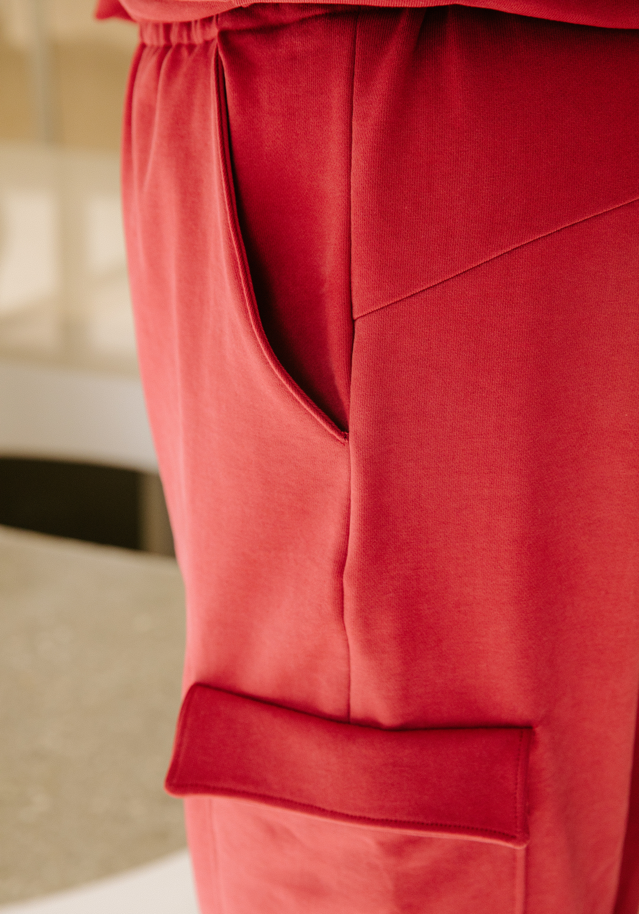 SASHA is a pair of jogger trousers that combine comfort with neat finishes. The elasticated waistband is built into the front pieces to avoid unwanted bulk, while the back is shaped with a yoke to give a flattering fit. The trousers feature Italian pockets, with the option to add flap patch pockets on the sides. The leg is straight - neither too slim nor too loose - and the hem can be finished to suit your preference: with ribbing, at ankle length, or extended over the instep.